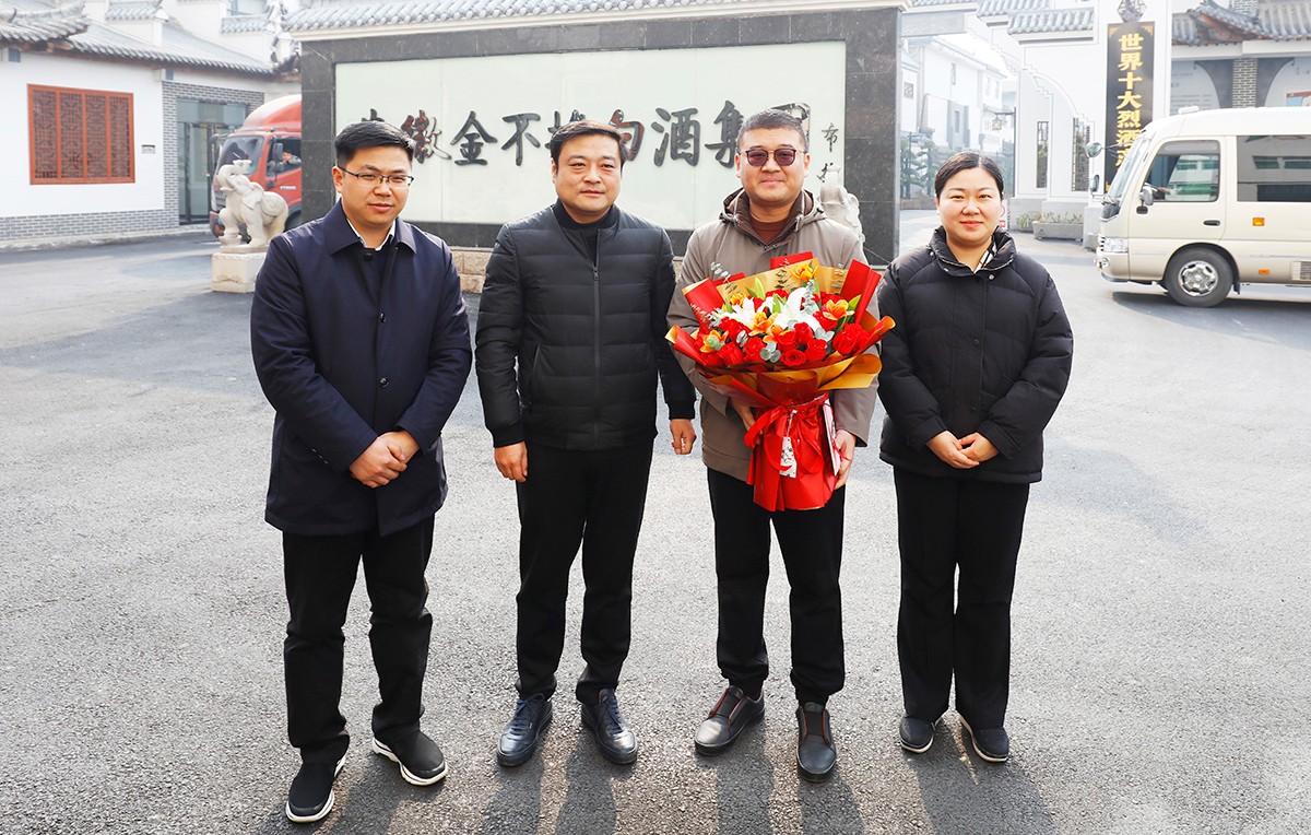 新(xīn)春佳节,區(qū)委书记周霄一行来到金不换白酒集团,走访慰问企业全體(tǐ)职工,送来党和政府的关怀和温暖,致以新(xīn)春问候和美好祝愿。